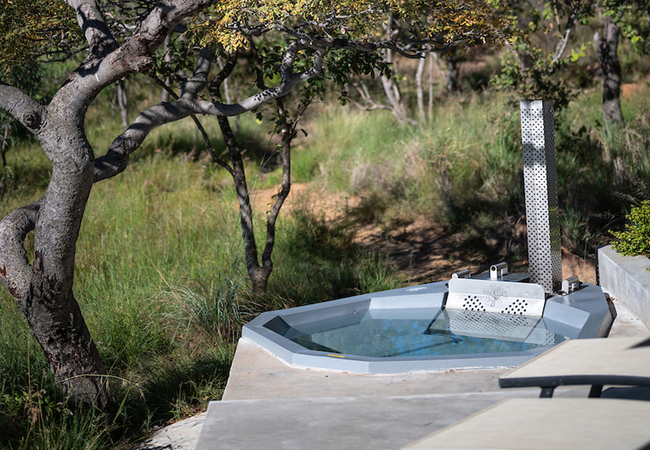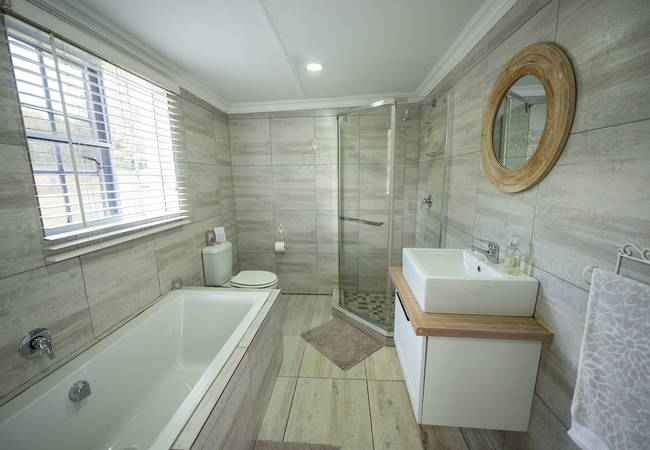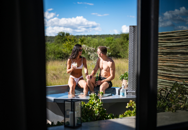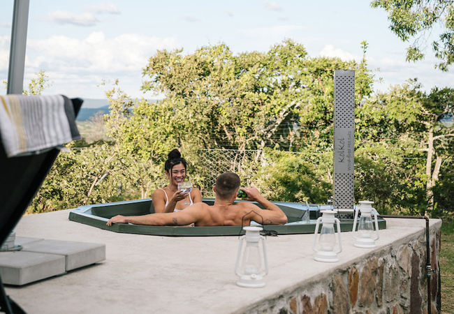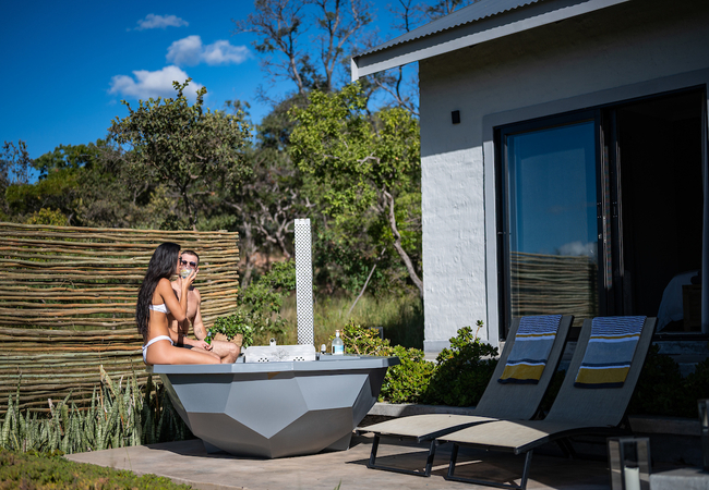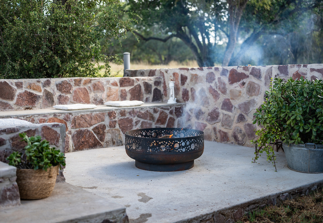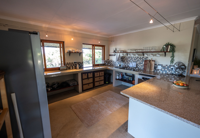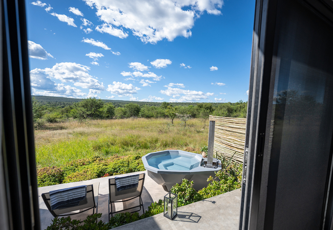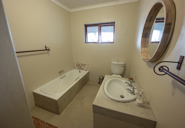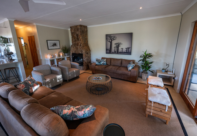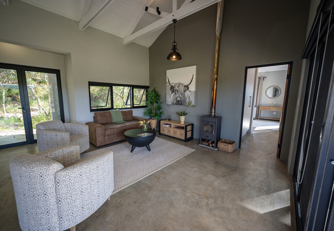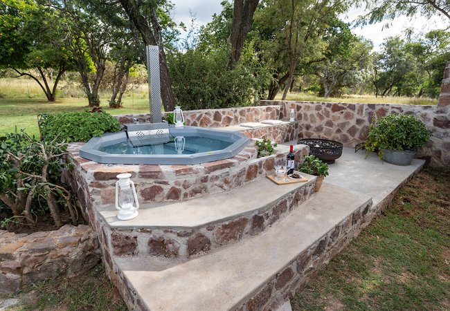 This 2 bedroom private cottage has a beautiful view of the reserve. The rooms are furnished with King-size beds or twin beds and each room is en suite with a bath, toilet basin and outside shower. There is an open-plan kitchen and sitting area with a fireplace and lovely stoep with a wood-fire hot tub.