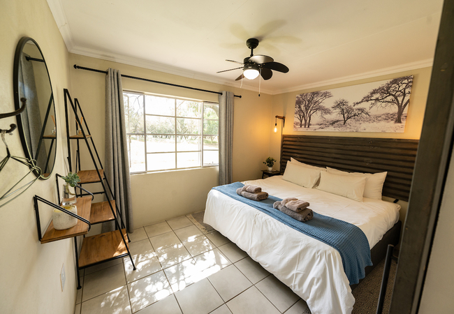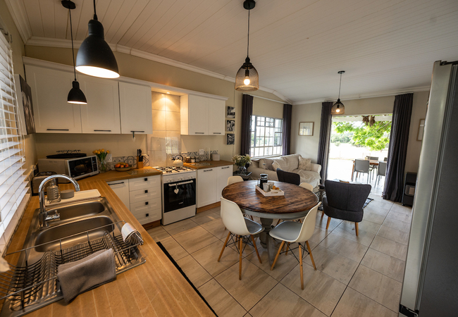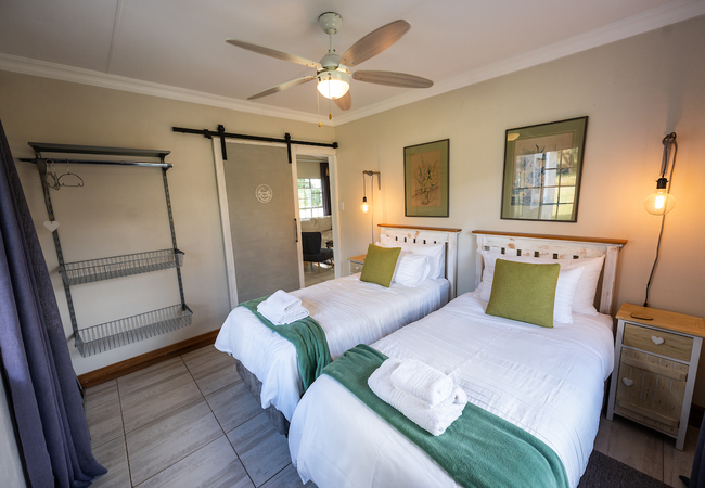 These quaint self-catering apartments each share a large farm stoep with a beautiful view of the farm. Both units have two bedrooms and a bathroom. There is an open plan kitchen / lounge.