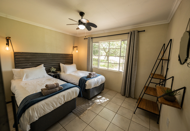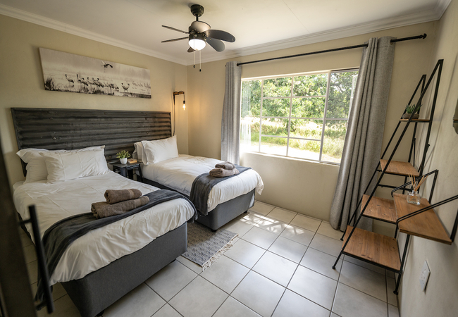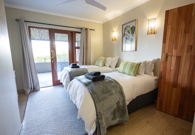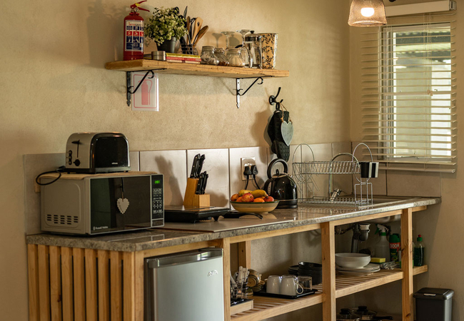 Marula Cottage is a private fully equipped unit with everything you could possibly need in the kitchen. There is a gas stove, microwave, fridge and all cooking utensils. All linen and towels are provided. Marula sleeps 4 people in 2 bedrooms. These rooms can be made up as singles or kings. There is a braai area and a Weber.