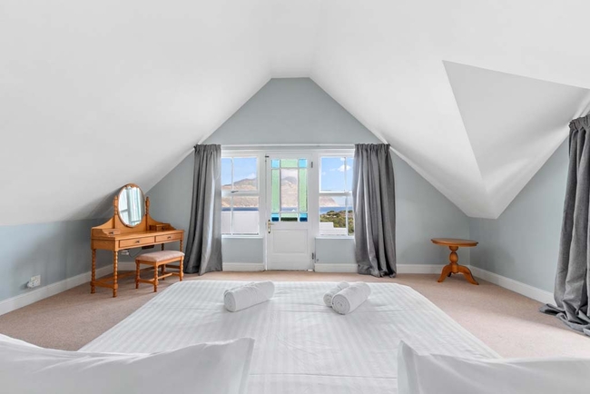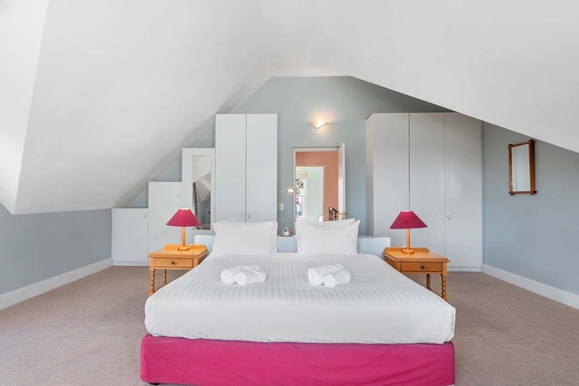 This inviting property can comfortably host up to seven guests and features three bedrooms, two bathrooms, and a guest toilet. The main bedroom is equipped with a double bed and includes an en-suite bathroom with a shower-over-bath.