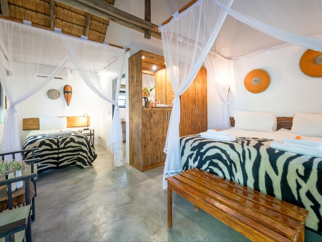 The Superior room is decorated with an African flair, and features a comfortable double bed and an en-suite bathroom with a shower and complimentary toiletries. Enjoy modern comforts such as air-conditioning, free Wi-Fi, and coffee and tea facilities.