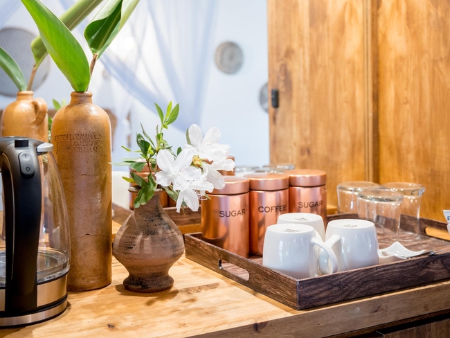 The Suite is elegantly decorated and offers a comfortable King-size bed, a private bathroom with a relaxing open-air bathtub, and complimentary toiletries. Tea and coffee facilities are also provided for your convenience. Additional amenities include Wi-Fi, air conditioning, a non-smoking environment, cleaning services, bathroom essentials, and tea and coffee facilities.