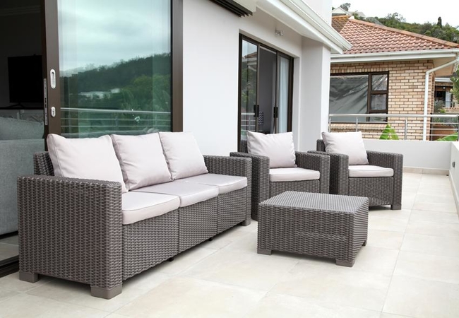 Offering self catering accommodation in Plettenberg Bay, the newly renovated house offers privacy and style. We have a swimming pool with balau deck, as well as four kitchens, five en-suite rooms, four braai areas, a double garage and parking behind an electrical gate.
