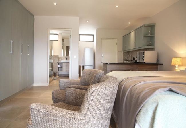 Unit 3 offers extreme privacy and this oversized unit accommodates two people in an extra length king size bed. You can relax on the private patio with views of the sea and mountain, the patio is equipped with a built-in braai.