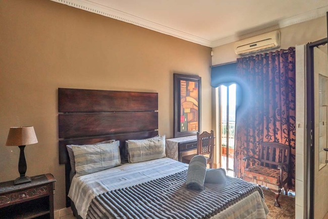 The Luxury Room is furnished with a Queen-size bed. The en-suite bathroom is equipped with a shower, hand basin, WC and free toiletries. The luxury suites are large, elegant and all overlook the green, luscious manicured gardens. The room has a private entrance and a seating area. Other facilities in the room include a flatscreen TV, safety deposit box, air-conditioning, desk and hairdryer.