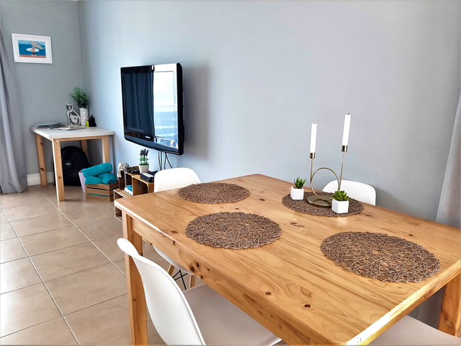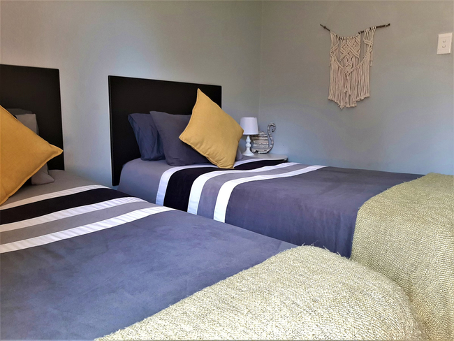 Designed to accommodate up to six guests, the apartment features three bedrooms, each furnished with two single beds and a private en-suite bathroom fitted with a shower, basin, and toilet. The open-plan kitchen is fully equipped for a comfortable self-catering stay, offering a fridge, oven with stove, and microwave and a washing machine. Guests can enjoy outdoor cooking using the portable braai facilities provided in the shared garden area. For added convenience, the apartment includes complimentary Wi-Fi, TV and a selection of DStv channels. Bed linen, bath towels, and hand towels are supplied, while guests are kindly requested to bring their own beach towels, wetsuits, and surfboards. For surfing enthusiasts, the apartment is also fitted with a dedicated board rack and a wetsuit drying rack.
