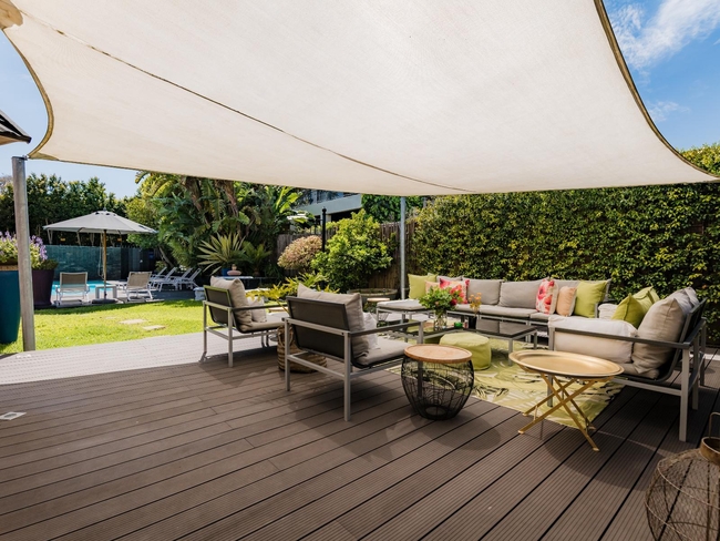 This Tigers Eye inspired room features warm ochre tones, plush bedding and rich textures that create a calm, grounding atmosphere. It includes a luxurious bathroom with a spa shower and twin vanities, plus a private wooden deck surrounded by greenery.
