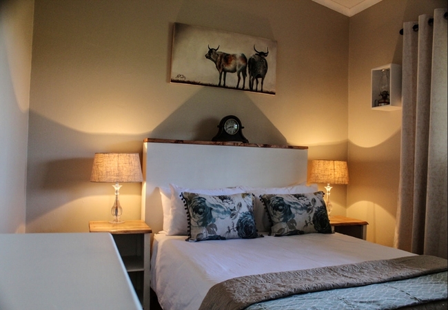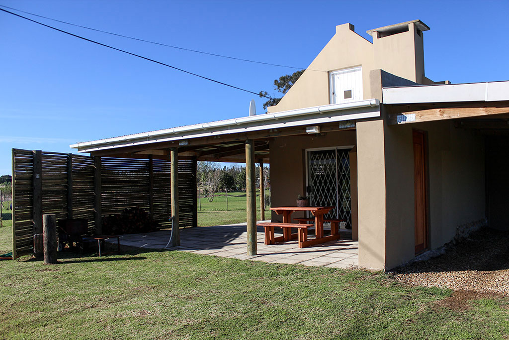 This old cowshed sleeps two adults guests in a bedroom with a double bed and a sleeper couch. The en-suite bathroom has a shower. There is a lounge area with fireplace, a TV and DStv, a fully equipped kitchen and a patio with an outside braai. Self catering kitchen in order to prepare your own meals. All cottages are fenced with a small lawn and offers safe parking.