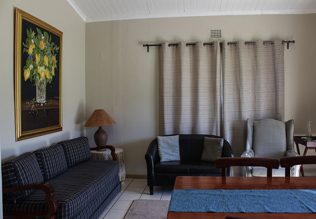 Cottage Three sleeps four guests. The first bedroom has a double bed, the second bedroom has two single beds and there is a sleeper couch. There is a bathroom with a shower, a fully equipped kitchen and a lounge area with a fireplace, TV and DStv. Outside there is a patio with braai facilities.