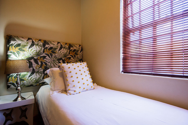 House 22B offers comfortable accommodation for up to 5 guests, featuring three bedrooms and one bathroom. The first two bedrooms are furnished with double beds, while the third bedroom has a single bed. The bathroom includes a toilet, bath, and shower. The open-plan kitchen is fully equipped with a stove, oven, fridge-freezer, microwave, toaster, and all necessary cutlery and crockery. A breakfast bar with stools provides a convenient dining space. The adjacent lounge offers comfortable seating and a TV with DSTV channels, perfect for relaxation. Wi-Fi is available throughout the unit. Outside, guests can enjoy a covered braai area with seating, and secure parking for one vehicle is available behind an automatic security gate.