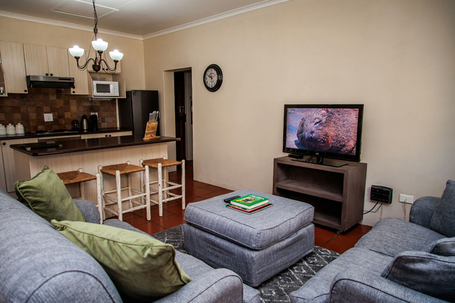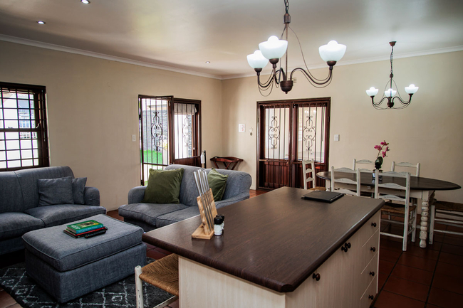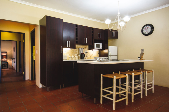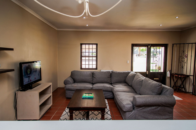 The spacious open-plan lounge, dining and fully equipped kitchen with DStv, fans and heaters to guarantee convenience, and there is Wi-Fi throughout the house for those wishing to keep in touch with loved ones while away, or for workaholics! The scullery has a washing machine with iron and ironing board.