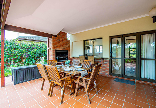 Outdoors, a covered and comfortably furnished verandah awaits, complete with a built-in braai for leisurely barbecues. The highlight is the Jacuzzi, a perfect spot to unwind under the sky; please note it is available for use during the warmer summer months. Whether you're relaxing indoors or enjoying the fresh air outside, this house offers an ideal escape with everything you need for a relaxing stay.