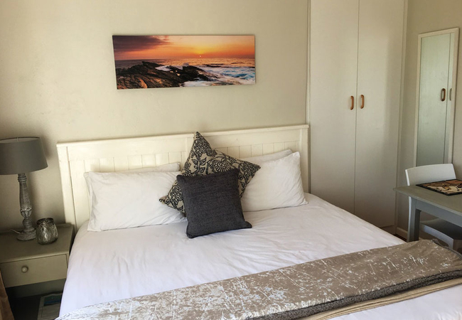 This is a lovely private unit is ideal for two persons but can accommodate three persons. There is one bedroom with a double bed and an en-suite bathroom and the lounge offers additional sleeping space for two persons on the sleeper couch. There is a separate open plan lounge with a kitchenette plus a small private garden. Relax at the beach style heated pool and braai on the gas BBQ facility. Wet suit and board facilities also available.