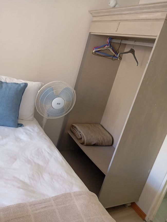 This private unit features a comfortable queen bed, an en-suite bathroom, and a basic kitchenette equipped with a kettle, microwave, toaster, and medium-sized fridge. A Smart TV with DSTV, Netflix, and other entertainment options is included for your enjoyment. Guests can relax by the beach-style pool or make use of the braai (barbecue) facilities. Additional amenities include free Wi-Fi, a sitting area, fan, cleaning service, shower-only bathroom, and coffee/tea-making facilities.