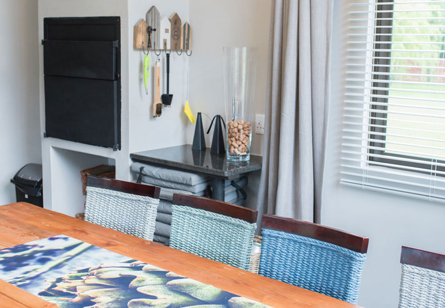 The house has a fully equipped kitchen with a gas / electrical stove, fridge / freezer and a dishwasher for convenience. The open plan living area boasts a fireplace and is equipped with full DStv.