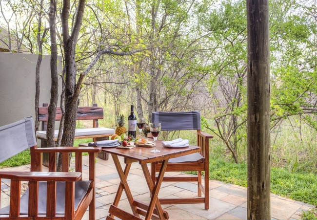 There is a King-size bed or twin beds and an en-suite bathroom. All suites have an outside shower and an exterior kitchenette and sitting area. Suites are equipped with a mini fridge, TV with DStv, air-conditioning, tea and coffee station, gowns and slippers.
