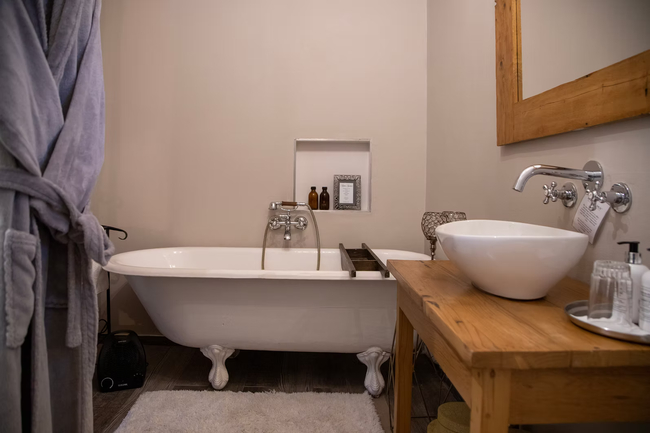 "The Loft" is a luxury New York-style 1-bedroom apartment, aimed at guests looking for overnight stays or a short breakaway. This stylish accommodation offers a range of modern amenities, including Wi-Fi, a TV, DVD player, and a cozy sitting area. The apartment is non-smoking and features a fireplace, a safe, and a full kitchen equipped with a refrigerator, microwave, and coffee/tea facilities. Guests can also enjoy the convenience of a separate tub and shower, bathroom amenities, a hairdryer, iron and ironing board, and bathrobes. Additional comforts include a patio and terrace, as well as regular cleaning service to ensure a pleasant and relaxing stay.