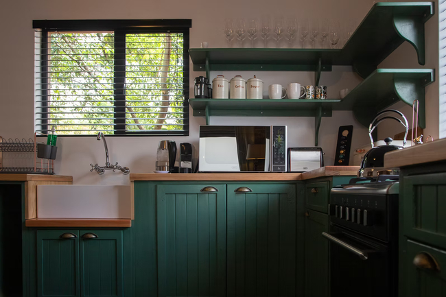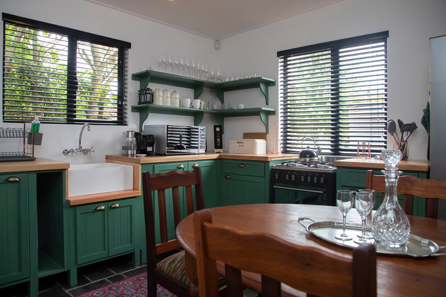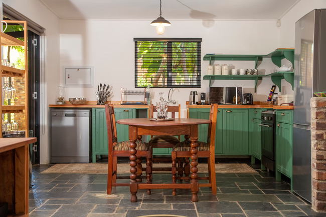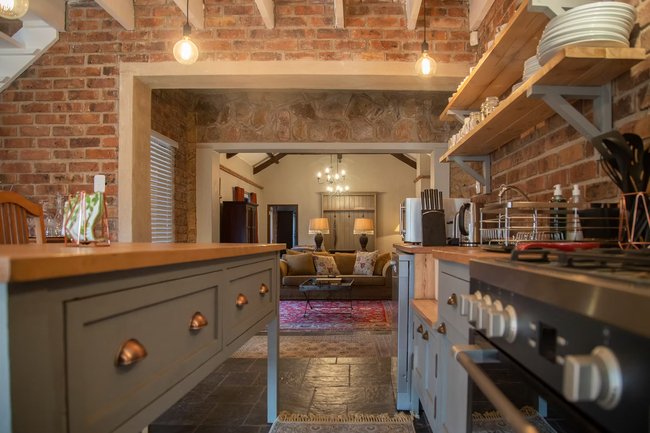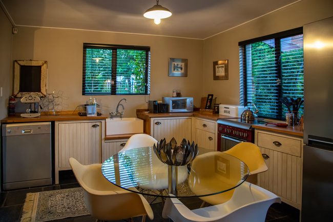 Apple Tree Cottage (sleeps 7): The cottage has three bedrooms, two of which have a Queen-size bed and one has three single beds. Two rooms have a full en-suite bathroom and one has a separate bathroom with a shower. Tarry-Stone Cottages all have fully equipped kitchens with a stove / oven, fridge / freezer, microwave and dishwasher. There is a living area with DStv as well as a cosy terrace or patio. Braai facilities and secure parking is provided