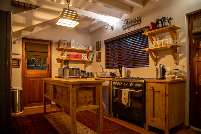 Stonefields Cottage (sleeps 6): Tcottage has three bedrooms all furnished with a Queen-size bed and each room has an en-suite bathroom. Tarry-Stone Cottages all have fully equipped kitchens with a stove / oven, fridge / freezer, microwave and dishwasher. There is a living area with DStv as well as a cosy terrace or patio. Braai facilities and secure parking is provided.