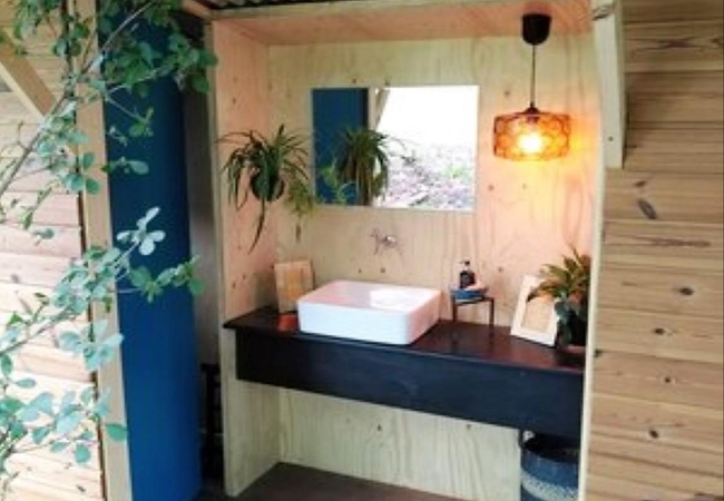 Tegwawn Glamping allows you to enjoy the thrill of camping but the luxury of a comfortable bed and beautiful bespoke kitchen with everything you need for a perfect meal. The tent is furnished with a double bed and a comfortable inside sitting area. The toilet (a beautiful dry/compost toilet) is located in a separate ablution unit 20 meters away. There is a separate kitchen built entirely out of reclaimed and locally sourced materials. The kitchen is equipped with two gas burners, and a medium sized refrigerator.