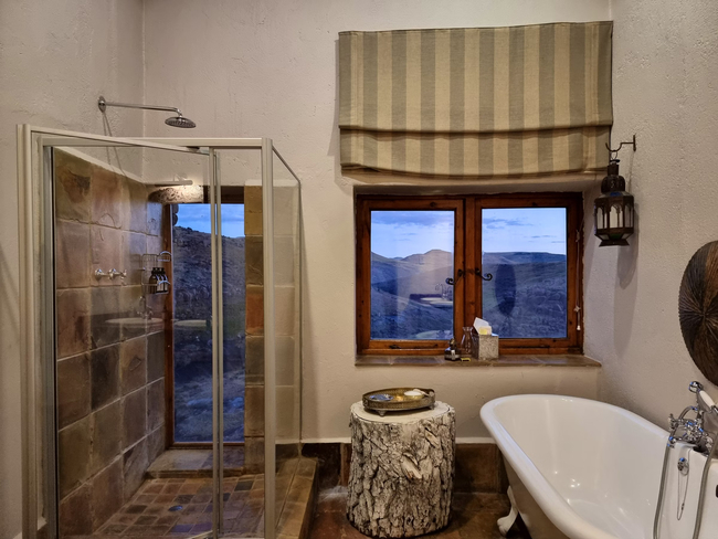 Tenahead was built from layered stone found in the area. This architectural aspect allows for harmony with the rocky surroundings. The lodge is surrounded by endless mountains. The views are spectacular! In Summer, wildflowers grow naturally in the rugged terrain, and birding is a major attraction. You'll be sure to meet their little “mascot”, the Drakensberg Rockjumper. Explore the great outdoors on one of their hiking trails. When they've had rain, the waterfalls are a beautiful sight. In Winter, the occasional snowfall turns Tenahead into a Winter Wonderland.