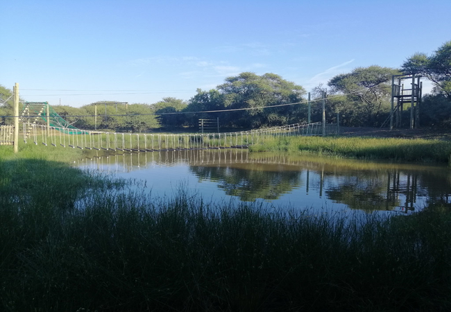 The Bush Camps sleep two people each. The bedroom is furnished with a double bed. The bathroom is fitted with a shower, toilet and basin. There is a living area with a TV and DStv / Satellite. Each camp has it's own braai area as well as a fully equipped kitchen. Cool off in the sparkling blue waters while you watch the game quenching their thirst at the nearby waterhole.