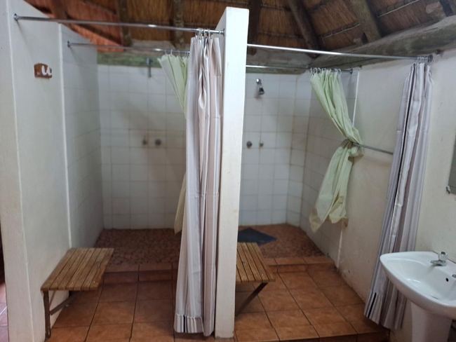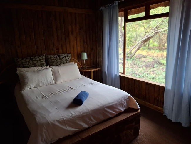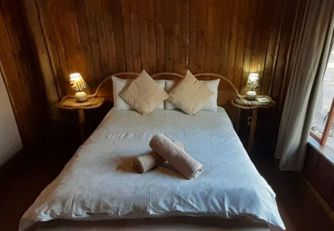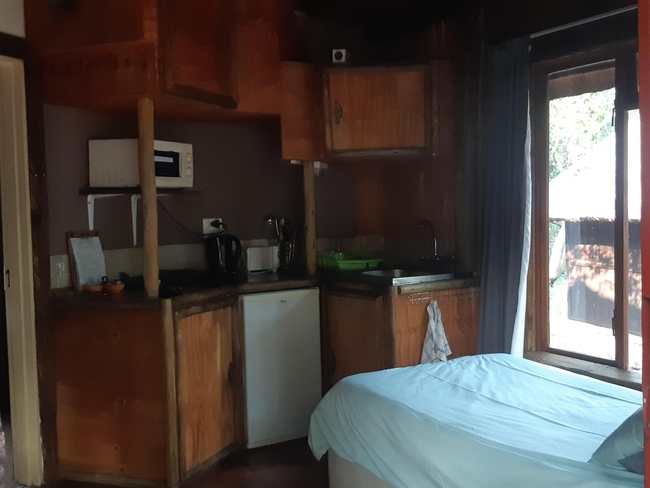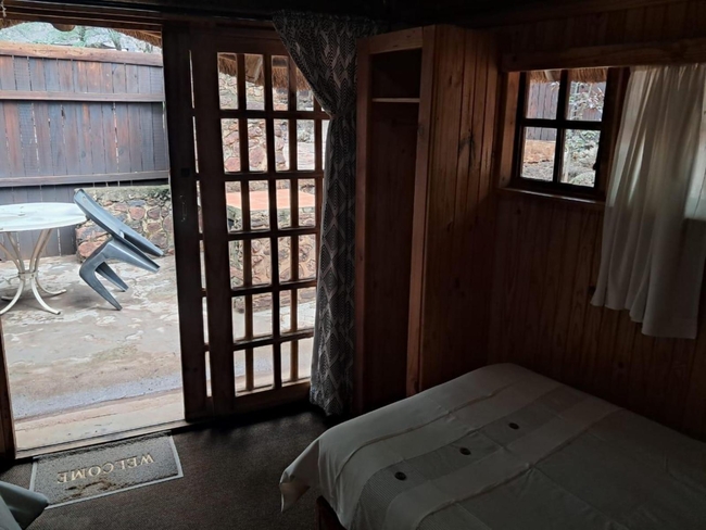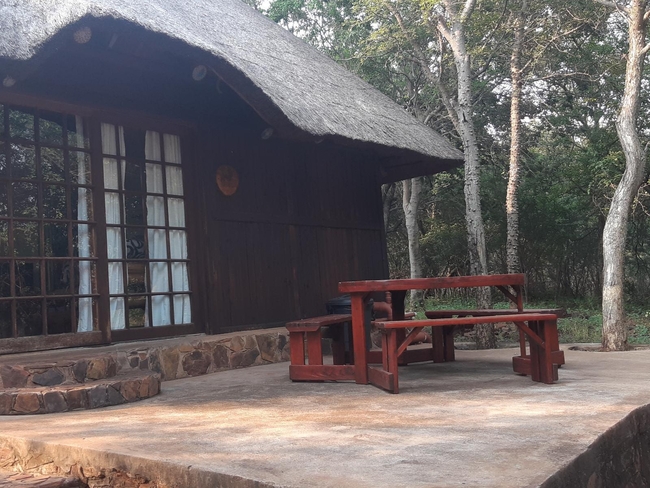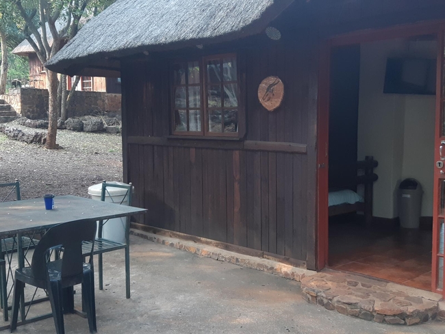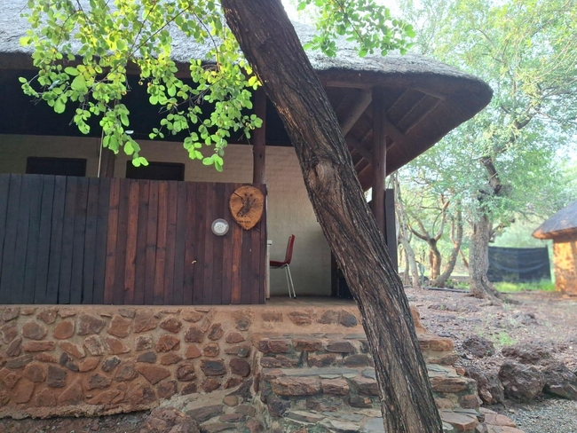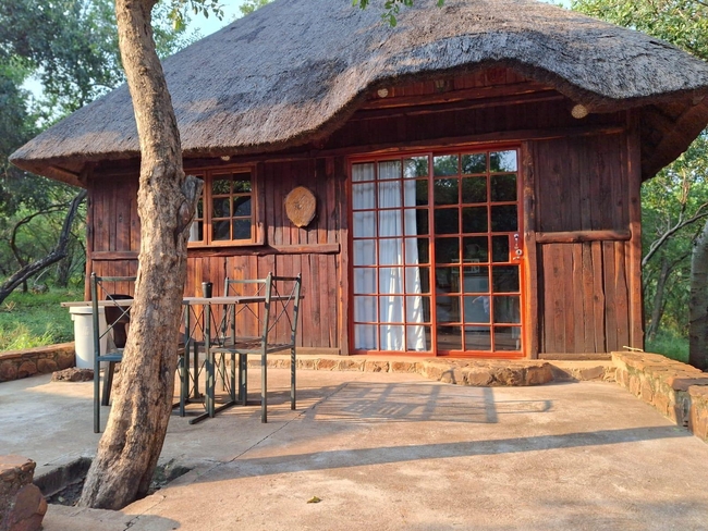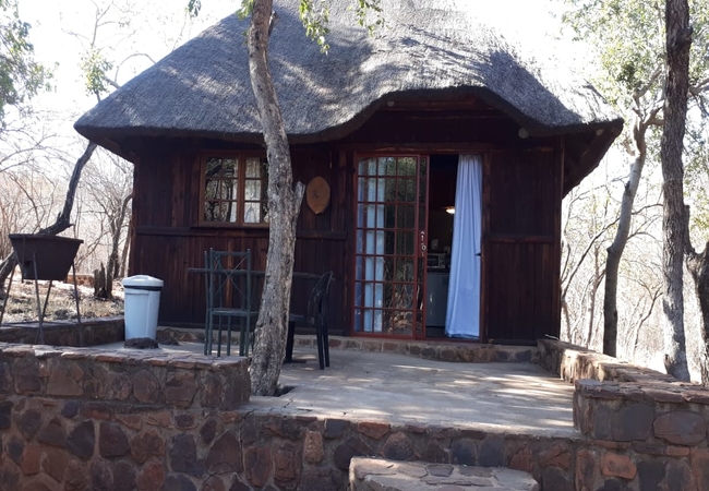 The Lodge, which is near the main gate, offers self catering chalets, wooden cabins / rondawels and camping. The units are rustic, thatched and are connected with demarcated stone paths close to the wooden decked restaurant.