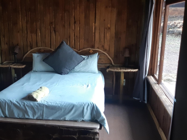 This charming cabin features a double-size bed and makes use of shared ablution facilities with a shower. It includes a bar fridge and coffee and tea-making facilities. Guests can relax on the patio, complete with outdoor furniture and a BBQ/raai area.