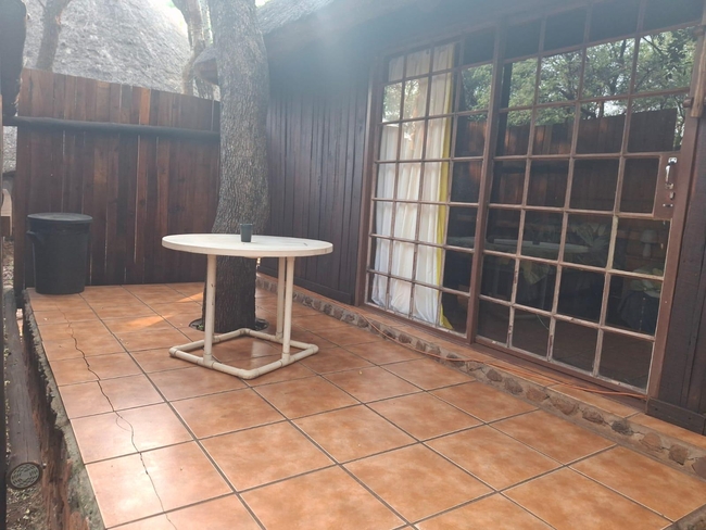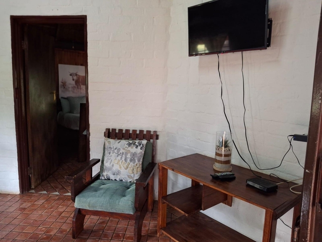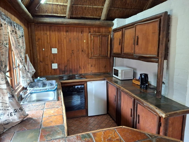 This chalet has a double-size bed. The bathroom is fitted with a shower. There is a kitchen with a stove, bar fridge, microwave and coffee and tea-making facilities. The sitting area has a TV. The patio has outdoor furniture and a braai area.