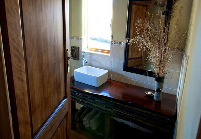 The main bedroom (top floor) has its own private balcony and boasts beautiful views across the dam and surrounding farmland. It is furnished with a queen bed and the bathroom has a shower, basin and toilet. The second bedroom is also situated on the top floor with views of the surrounding mountains. It has twin beds and a bath, basin and toilet.