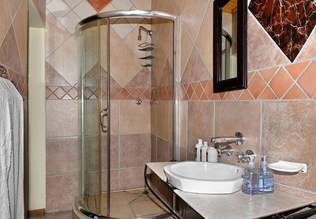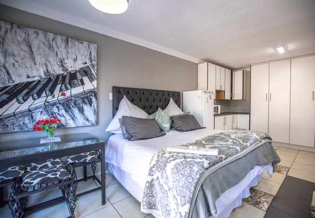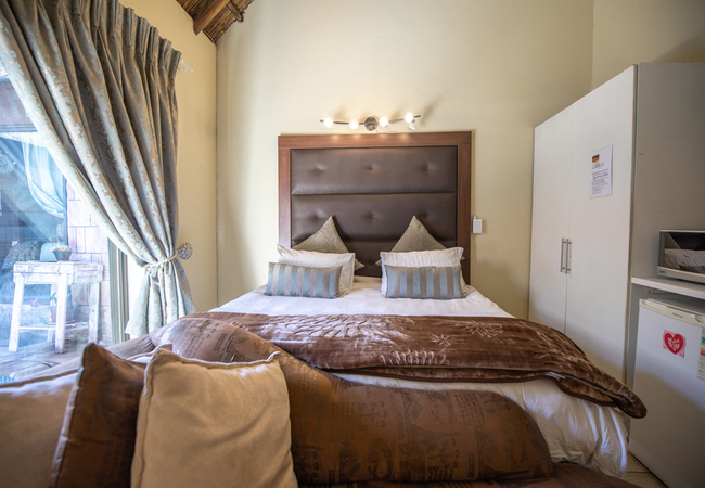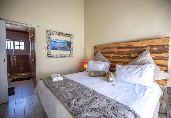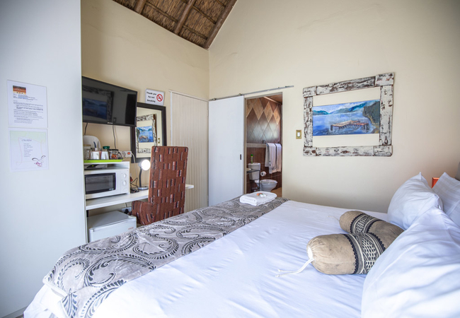 Africa Room is furnished with a King-size bed which can be converted to two single beds. This top level room is very private and has an en-suite bathroom with a shower. The kitchenette has a microwave, fridge and tea / coffee station. The room has a flat screen TV with satellite channels and free Wi-Fi.
