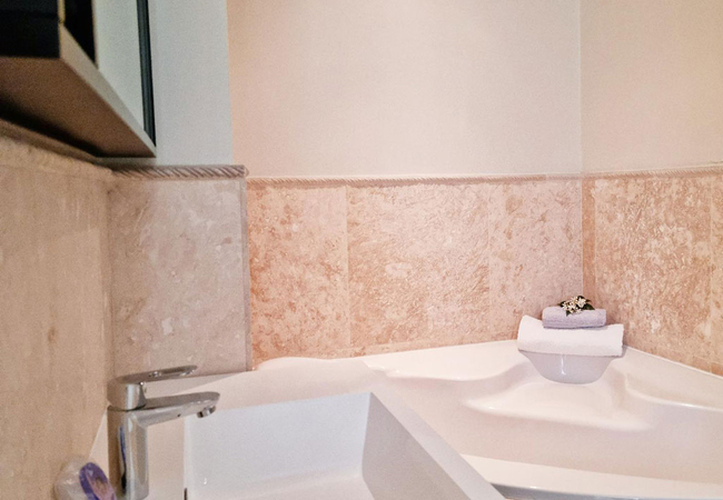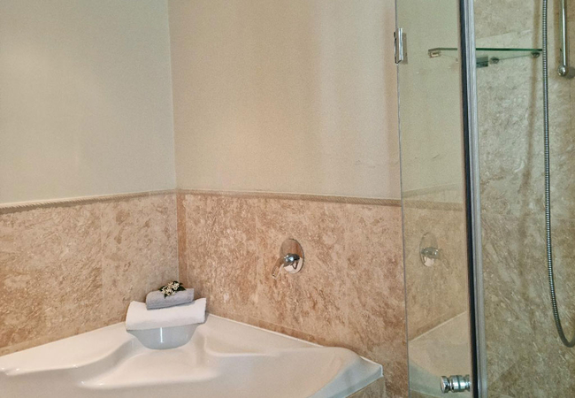 The Beach Apartment has two bedrooms. The spacious main bedroom is furnished with a King-size bed. The en-suite bathroom is fitted with an oval bath, shower, toilet and basin. The second bedroom is also spacious and has two single beds. The second bathroom is fitted with a shower, toilet and basin. Bed linen, bath and beach towels are provided.