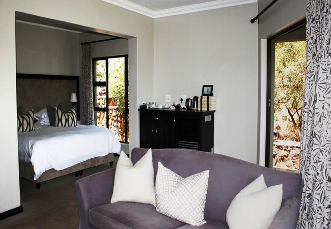 A Comfortable, large room with a double bed and an en-suite bathroom. All Suites are North West Facing boasting views of the indigenous bush. A private patio and a stunning view of the indigenous bush makes for a romantic trip with your partner. Enjoy our scrumptious Breakfast that is included with your stay. Complimentary WiFi is available in the room. All rooms are equipped with a flat-screen television with selected DSTV channels.