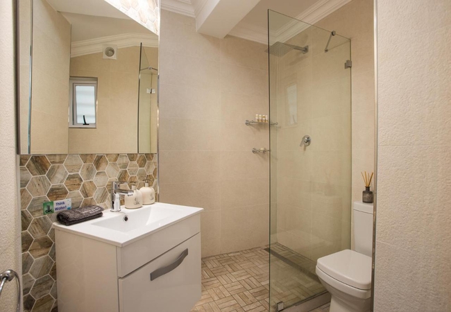 The Boardwalk Holiday Apartment has two bedrooms and two bathrooms. The spacious main bedroom is furnished with a Queen-size bed and has a full en-suite bathroom. The second bedroom has two single beds and makes use of a guest bathroom with a shower.