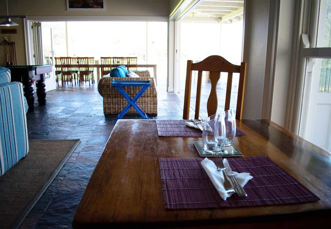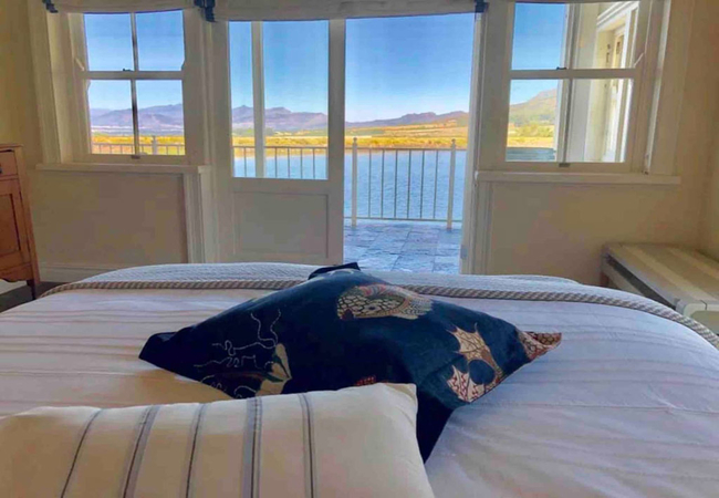The Boathouse at Oakhurst Olives sleeps two guests in a bedroom with a Queen-size bed, white percale linen, air conditioning and an en-suite bathroom with a shower. The living area and bedroom open out on to the wrap around patio overlooking the water. The open plan living area has a log fire place, underfloor heating, a dining table and a fully equipped kitchen that contains a scullery and a dishwasher for convenience. The patio has a hot tub, barbecue/braai as well as a gas barbecue and dining area. On the lower level there is a ladder to access the water for swimming (swimming towels are provided) as well as a kayak and life jackets for your use. Please note that all activities are at your own risk.