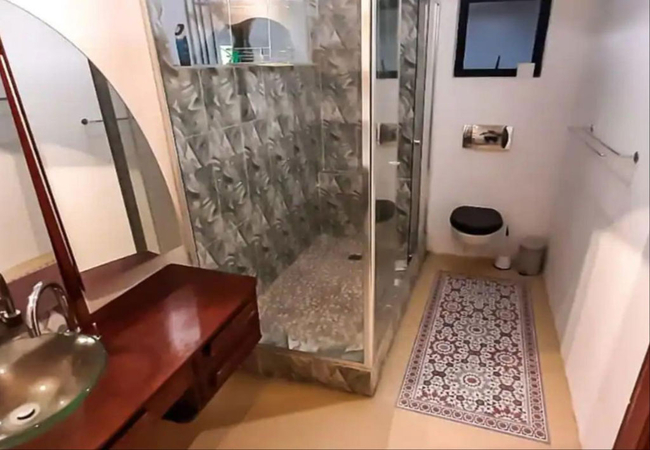 The Boho Cave is a boho styled garage conversion fit for Digital Nomads, single travellers and couples. The apartment in Glencairn can sleep up to two guests and comprises a bedroom downstairs furnished with a Queen-size bed. The bathroom is fitted with a shower, toilet and basin.