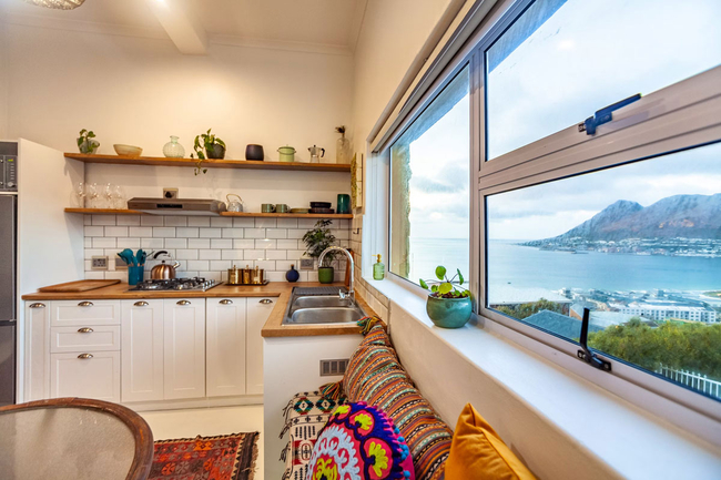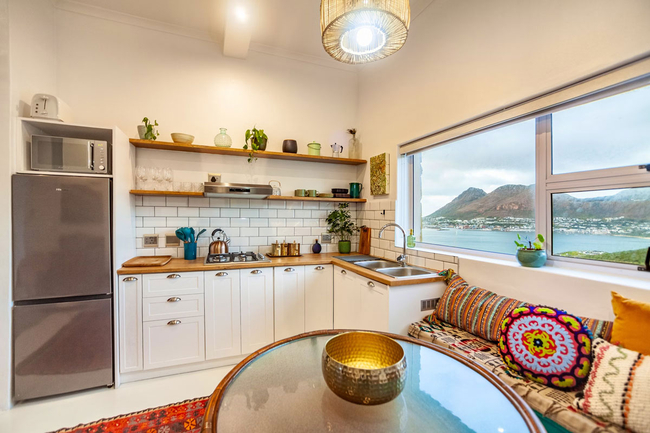 Perched on a hilltop in the tranquil suburb of Glen Marine, Glencairn, The Cape Aquanaut boasts breathtaking vistas of False Bay and the expansive ocean. Situated just 700 meters from Shelly Beach and 1.2 km from Glencairn Beach, this charming self-catering apartment is a haven for those seeking seaside serenity in Cape Town.