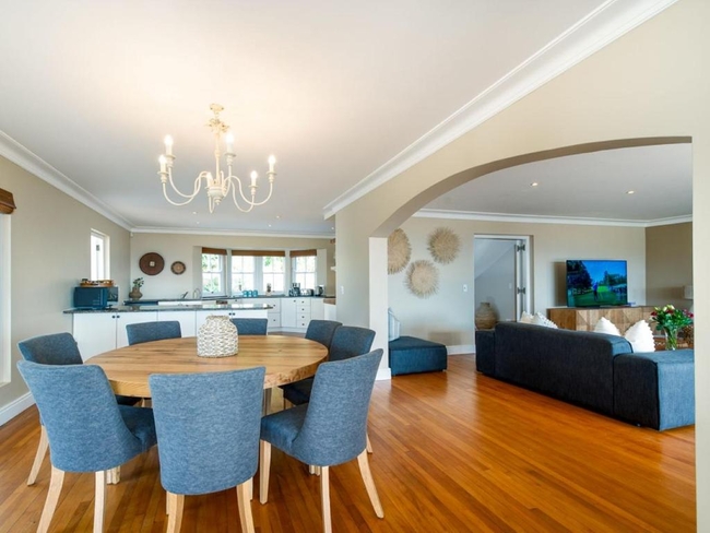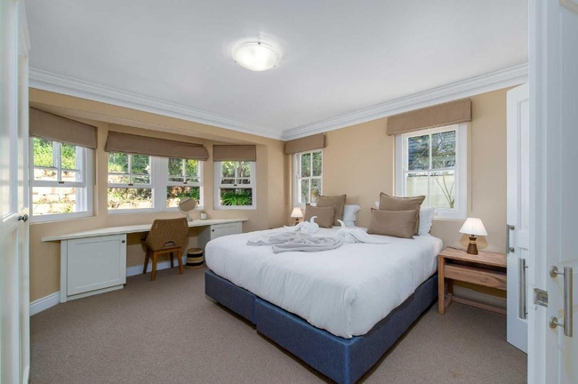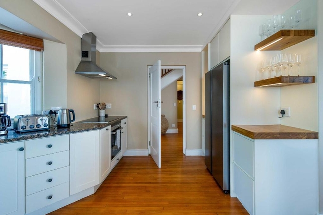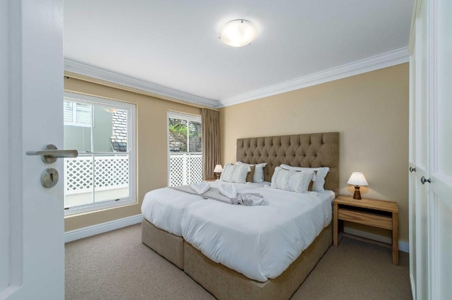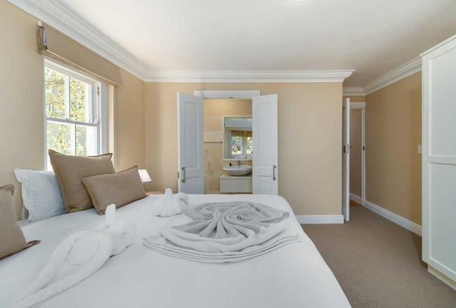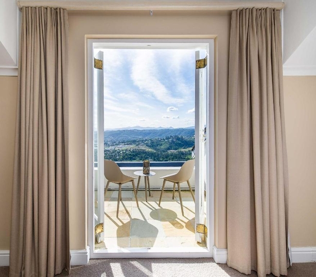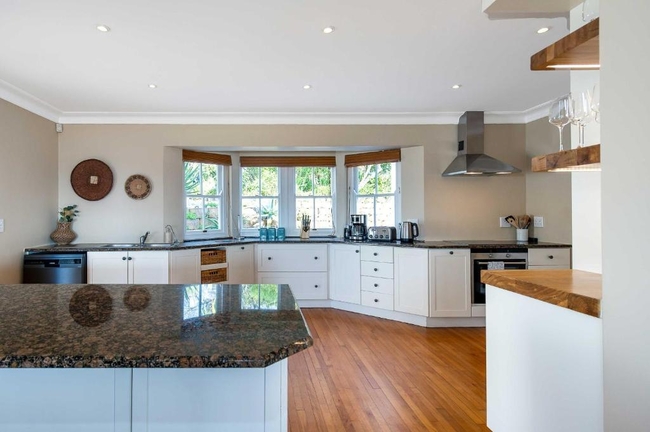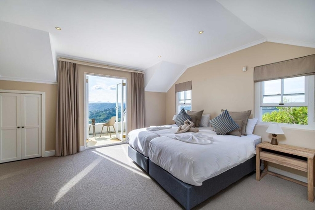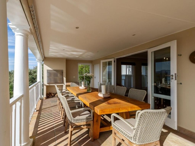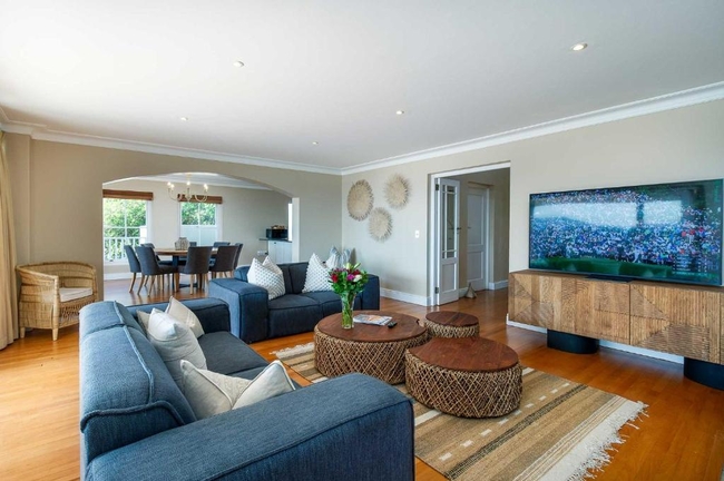 The Chandler is an elegant and expansive holiday residence situated within the prestigious Pezula Golf Estate in Knysna. Boasting sweeping views of the lagoon, this villa offers an exceptional retreat for families or groups of friends seeking both comfort and tranquillity. The property features four bedrooms and five bathrooms, comfortably accommodating up to eight guests. The first bedroom is furnished with a king-size bed that can be separated into two single beds, complemented by an en-suite bathroom with a shower-over-bath. The second bedroom also offers a convertible king-size bed and an en-suite shower. The third bedroom provides a king-size bed with an en-suite bathroom that includes a bidet and a shower-over-bath. The fourth bedroom features a king-size bed with an en-suite shower. An additional guest bathroom is available, fitted with both a bath and a shower. The open-plan living area combines a dining space with a lounge, complete with a television, fireplace, and inviting seating. The fully equipped kitchen includes a fridge-freezer, stove, oven, microwave, and dishwasher, providing everything needed for a self-catering stay. Outside, guests can unwind on the generous patio, which offers comfortable seating and a dining area ideal for al fresco meals. The property also includes a private swimming pool, braai facilities, complimentary Wi-Fi, and secure parking.