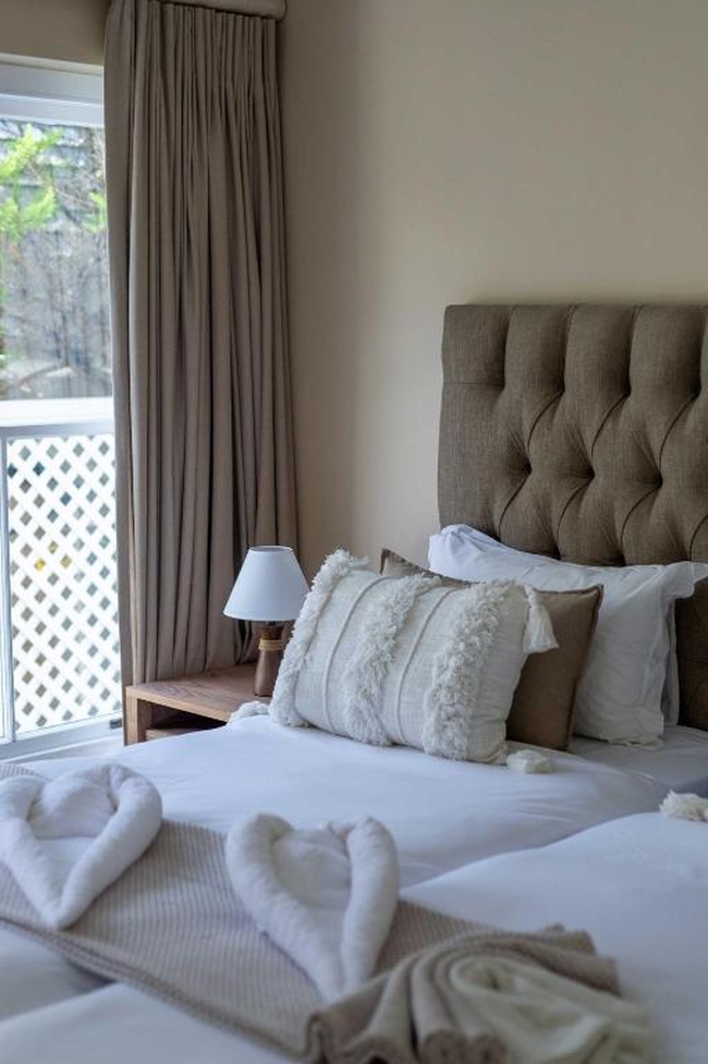 Outside, guests can unwind on the generous patio, which offers comfortable seating and a dining area ideal for al fresco meals. The property also includes a private swimming pool, braai facilities, complimentary Wi-Fi, and secure parking.