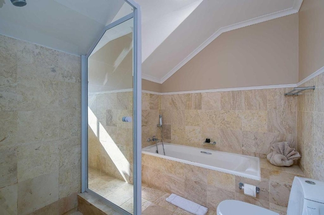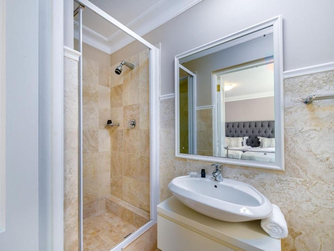 The second bedroom also offers a convertible king-size bed and an en-suite shower. The third bedroom provides a king-size bed with an en-suite bathroom that includes a bidet and a shower-over-bath. The fourth bedroom features a king-size bed with an en-suite shower. An additional guest bathroom is available, fitted with both a bath and a shower.