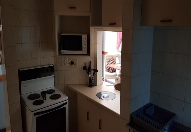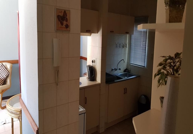 The unit has a fully equipped kitchenette, air-conditioning, King-size bed and a single bed. The King-size bed can be converted to two single beds on request. This unit can accommodate three guests and has an en-suite bathroom with a shower. TV with DStv and Wi-Fi.