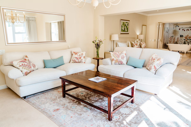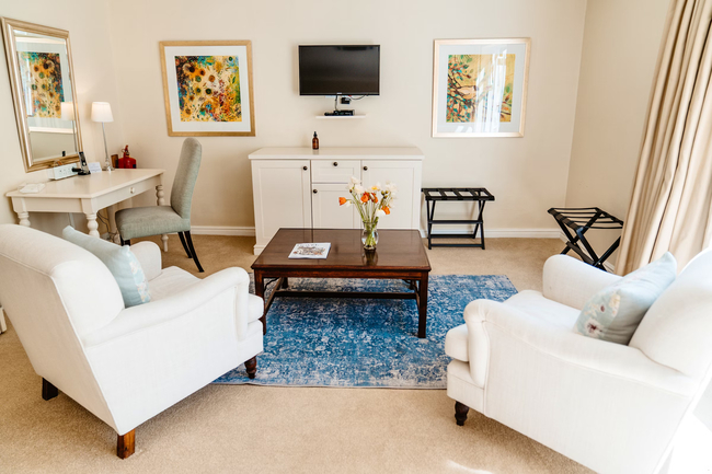 These air-conditioned suites offer a garden view, an open-plan lounge and dining area, and are furnished with king-size beds. Each suite features an en-suite bathroom with a bath, shower, toilet, and washbasin. Guests can enjoy heated towel rails, velour robes, and slippers. A lavish breakfast, complimentary minibar, snacks, a tea and coffee tray, and wireless internet access are provided. Additional bespoke amenities include underfloor heating, select satellite TV, a flat-panel LCD TV, and a DVD player.