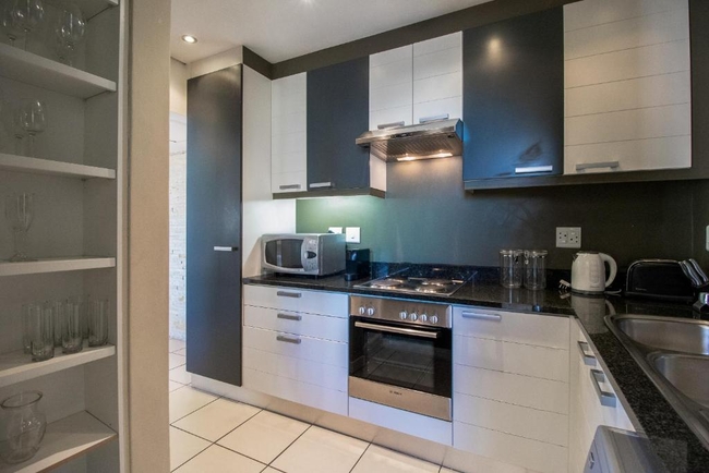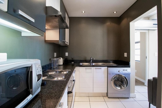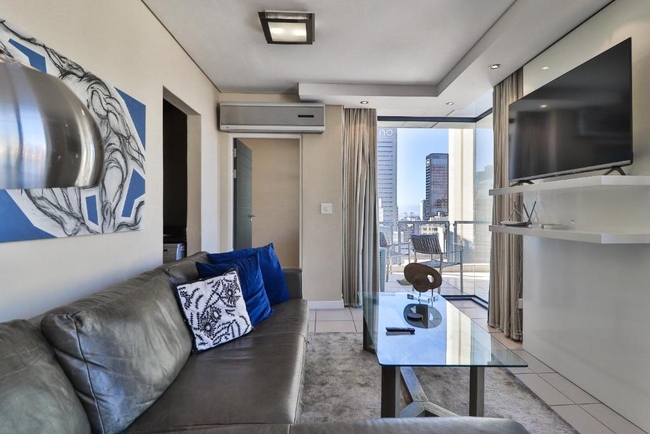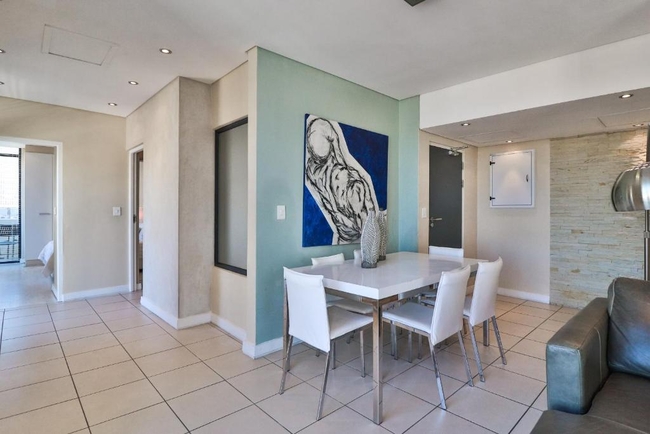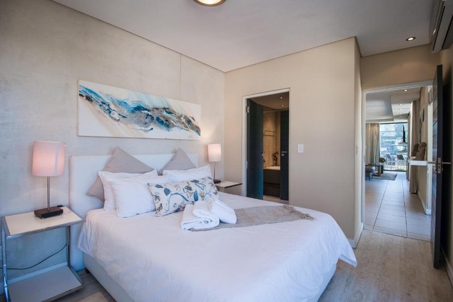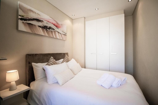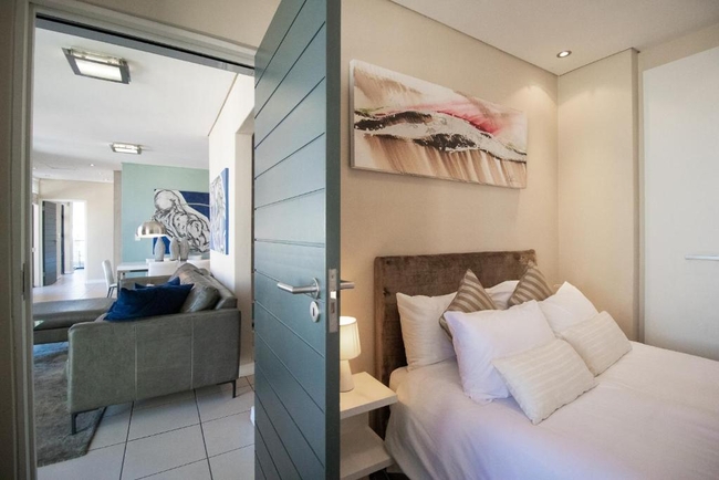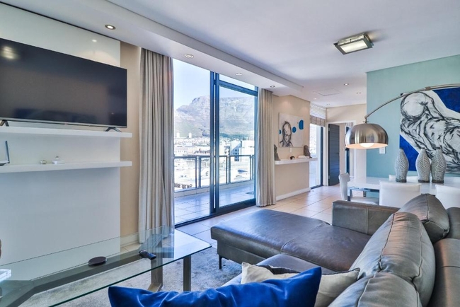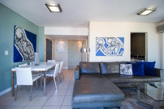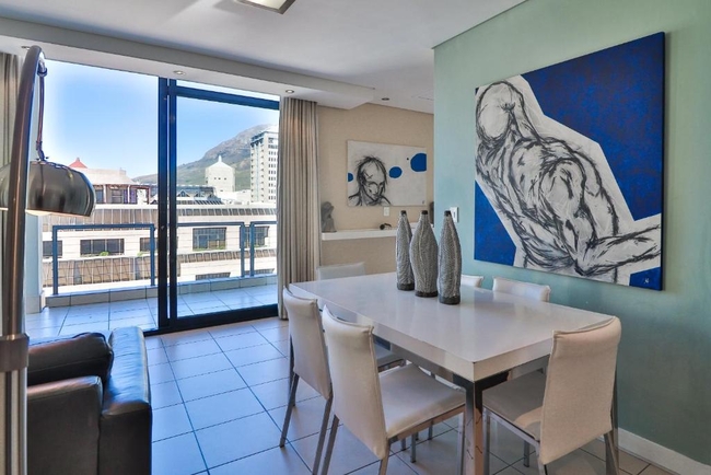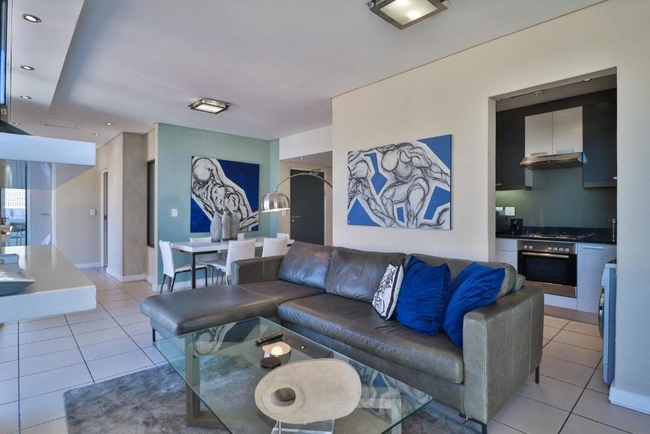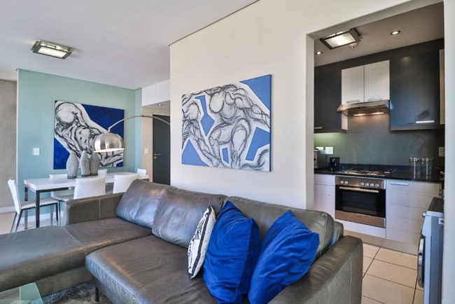 The living area extends to a private balcony, complete with outdoor seating—an ideal spot to unwind while admiring Cape Town's iconic scenery. Additionally, guests benefit from secure, dedicated parking and elevator access to the apartment for ease and peace of mind.