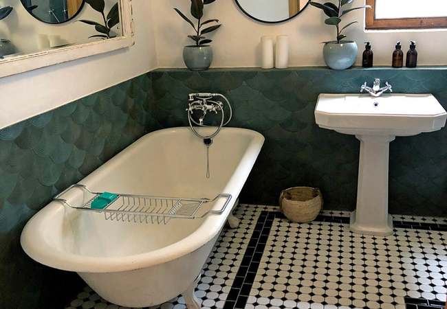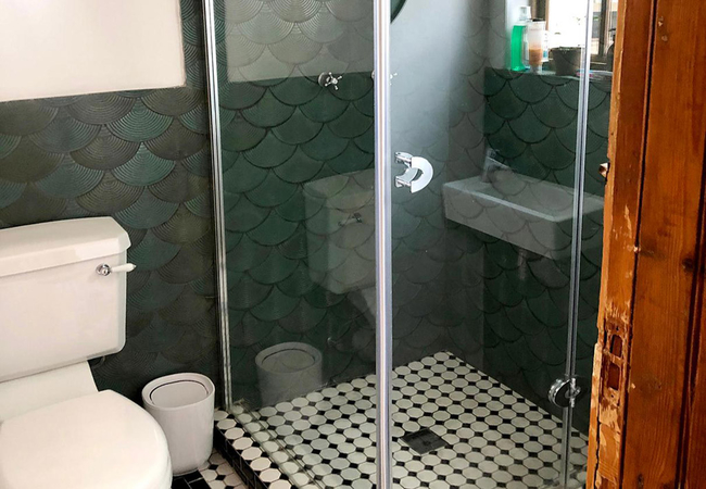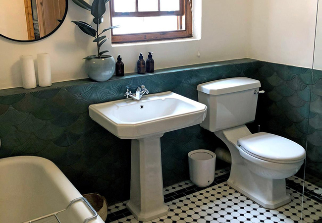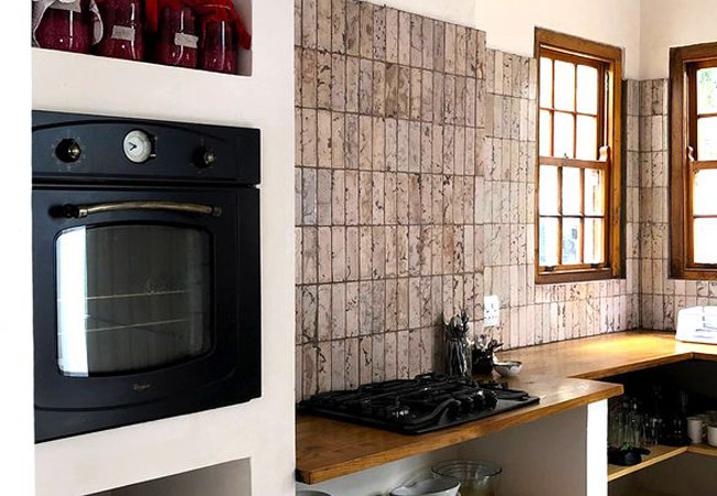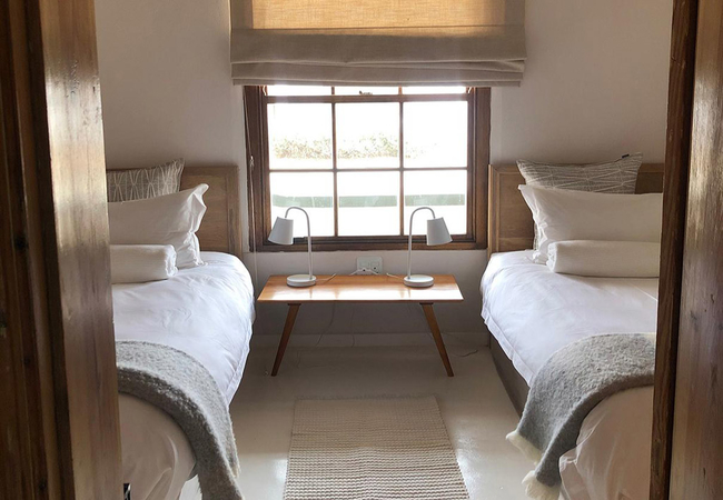 The Dusty Vine Hoek Huis is a holiday home sleeping up to six guests. There are three bedrooms. The first bedroom has a Queen-size bed. The second and third bedrooms each have two single beds. There are two bathrooms, one with a bath and shower and the other with a shower only.