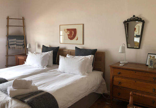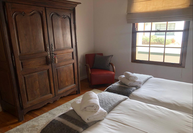 Hoek Huis is a grand old Karoo lady set on the historic Tobie Muller Street. The Dusty Vine Hoek Huis can accommodate up to six guests. There are three bedrooms. The first bedroom has a Queen-size bed. The second and third bedrooms each have two single beds. There are two bathrooms, one with a bath and shower and the other with a shower only. The kitchen is fully equipped with a hob, oven, kettle, toaster and dishwasher. There is a dining area with a large dining table and two lounge areas with fireplaces. There is a large patio as well as a private courtyard area with a dining table. Braai Facilities are available and the house is serviced daily. Meals can be arranged at an additional cost.