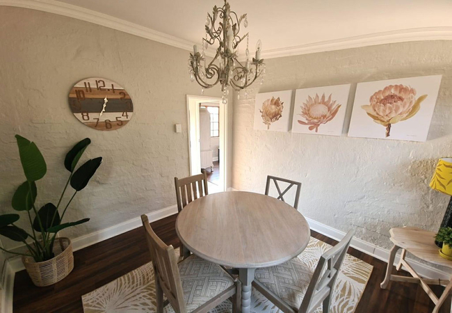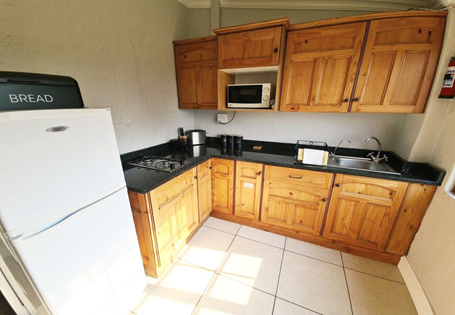 The kitchen is equipped with a two-plate hob, fridge / freezer, microwave, kettle and toaster. There is a dining area with a round 4-seater dining table. The cosy lounge area contains a double fold-out sleeper couch, and a flat-screen TV with a selection of DStv channels and a DVD player. The cottage has a wood-burning fireplace, and firewood is provided throughout your stay.