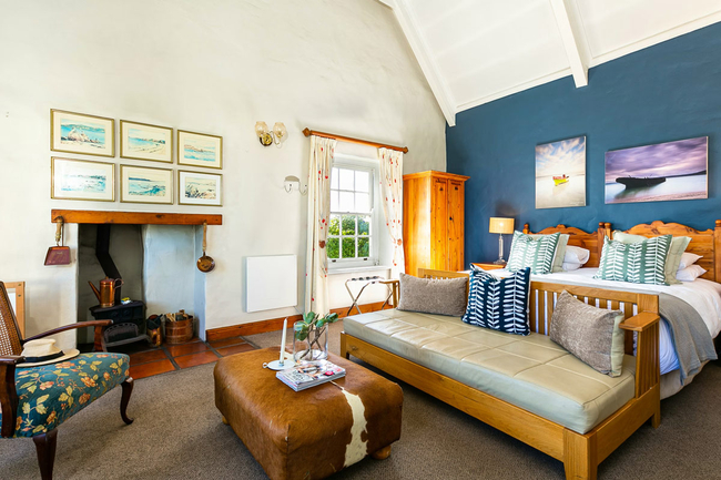 The Lagoon View Room with Wood Fired Hot Tub is a light and inviting space featuring beautiful lagoon views and a private deck with a wood-fired hot tub. Inside, guests can relax by the anthracite fireplace or unwind in the comfortable sitting area. The room includes an en suite bathroom with a shower, along with modern conveniences such as Wi-Fi, satellite TV, a safe, and coffee and tea facilities, offering a cozy and tranquil non-smoking retreat.