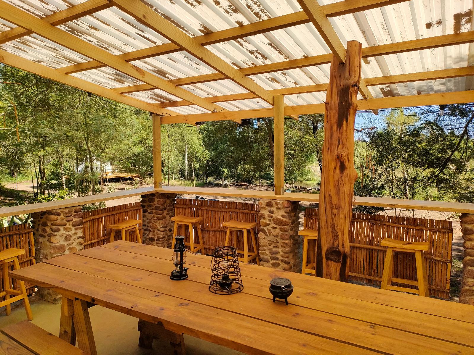 Guests can book a lovely A-frame Cabin or a Bell Tent both of which share communal ablution facilities with showers and flushing toilets. There is a lovely, communal glamping deck which overlooks the river and is equipped with a gas cooker, sink, dining table and bar stools. Two braai areas and a fire pit are available, perfect for group gatherings.
