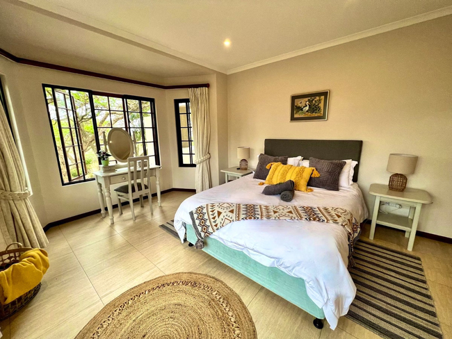 The Giraffe House offers a serene retreat for nature enthusiasts, located within a private game reserve near Winterton, in the heart of the central Drakensberg. Accommodating up to eight guests, this tranquil haven is ideal for those seeking a peaceful getaway surrounded by the beauty of nature. The house provides four well-appointed bedrooms and three bathrooms. Two of the bedrooms are fitted with queen-size beds, each featuring an en-suite bathroom that includes a shower, bathtub, toilet, and basin. The remaining two bedrooms are equipped with two single beds each. A third shared bathroom is available, complete with a shower, bathtub, toilet, and basin. Designed for self-catering convenience, the fully equipped kitchen includes a stove, oven, fridge-freezer, dishwasher, microwave, as well as all necessary cutlery and crockery. The property offers two comfortable lounges, perfect for relaxation, along with two patios that invite you to enjoy the peaceful surroundings. Guests can also make use of the cosy fireplace, a dining table for shared meals, and a television with DStv for entertainment. Wi-Fi is available throughout the house. Set within a secure estate teeming with wildlife and bordered by majestic acacia trees, this location provides the perfect environment for relaxation and rejuvenation, with sweeping views of the surrounding bushveld.