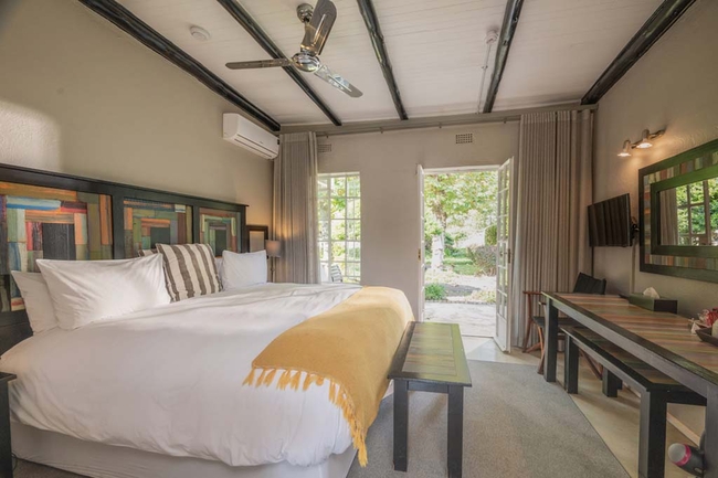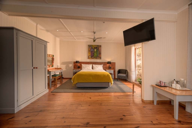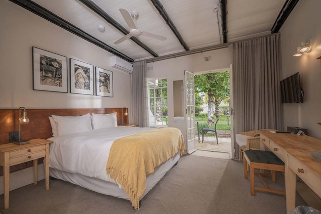 The hotel offers a total of 38 en-suite bedrooms, catering to a variety of travellers. The main building features 23 distinctive Artist Rooms, each individually styled with works by contemporary South African artists, creating an immersive cultural experience.